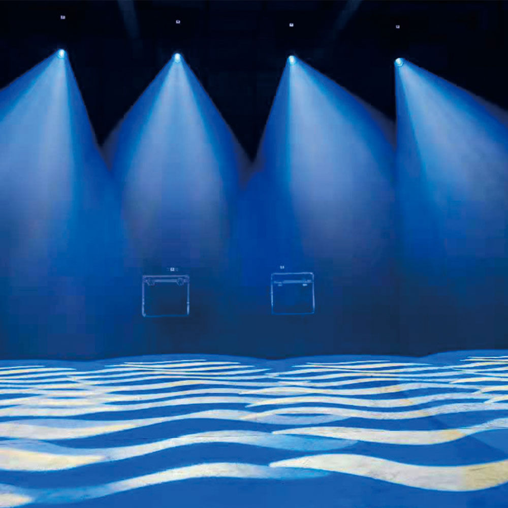 Color wheel: 6 fixed color chips + white light, half-color effect, color chip can be positioned arbitrarily, with two-way rotation rainbow effect pattern